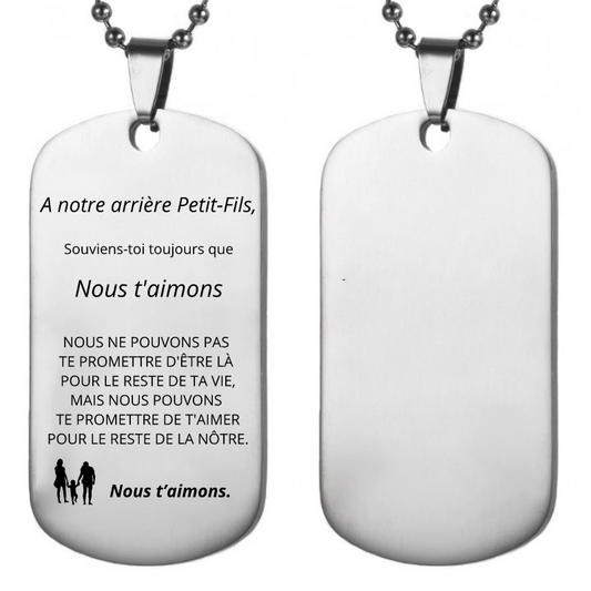 Offrez à votre arrière petit-fils un cadeau d'anniversaire unique avec notre porte-clé personnalisé. Ce porte-clé est gravé avec le message "A mon Arrière-Petit-Fils, Joyeux Anniversaire" personnalisé avec son prénom et/ou son âge.